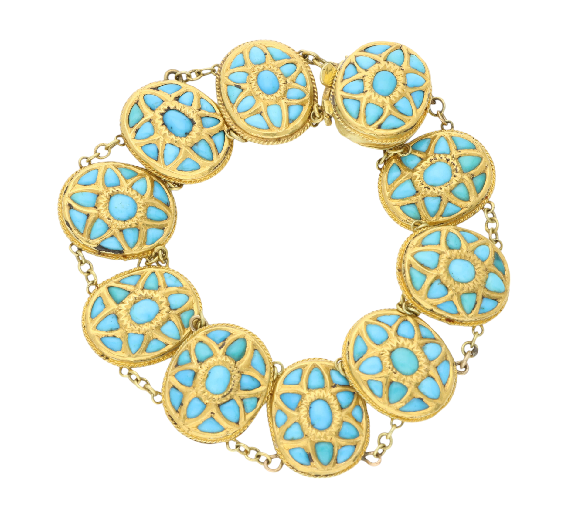 A Victorian yellow gold turquoise bracelet