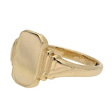 This classic signet ring is crafted in polished yellow gold and features a clean, undecorated signet face with softly stepped shoulders. The smooth surface offers a timeless, understated look, traditionally intended for engraving or left plain to highlight the beauty of the gold itself.