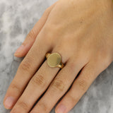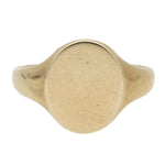 This classic signet ring is crafted in polished 9K yellow gold and features a smooth oval signet face with a minimalist finish. The gold surface highlights the warmth and richness of the metal, giving the ring a timeless presence.