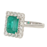 Vintage Emerald and Diamond Halo Ring Set In 18 Carat White Gold.