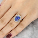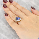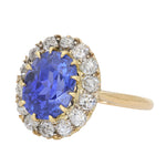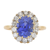 Vintage No Heat Sri Lankan Sapphire and Diamond Cluster Ring in 18K Yellow Gold