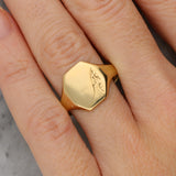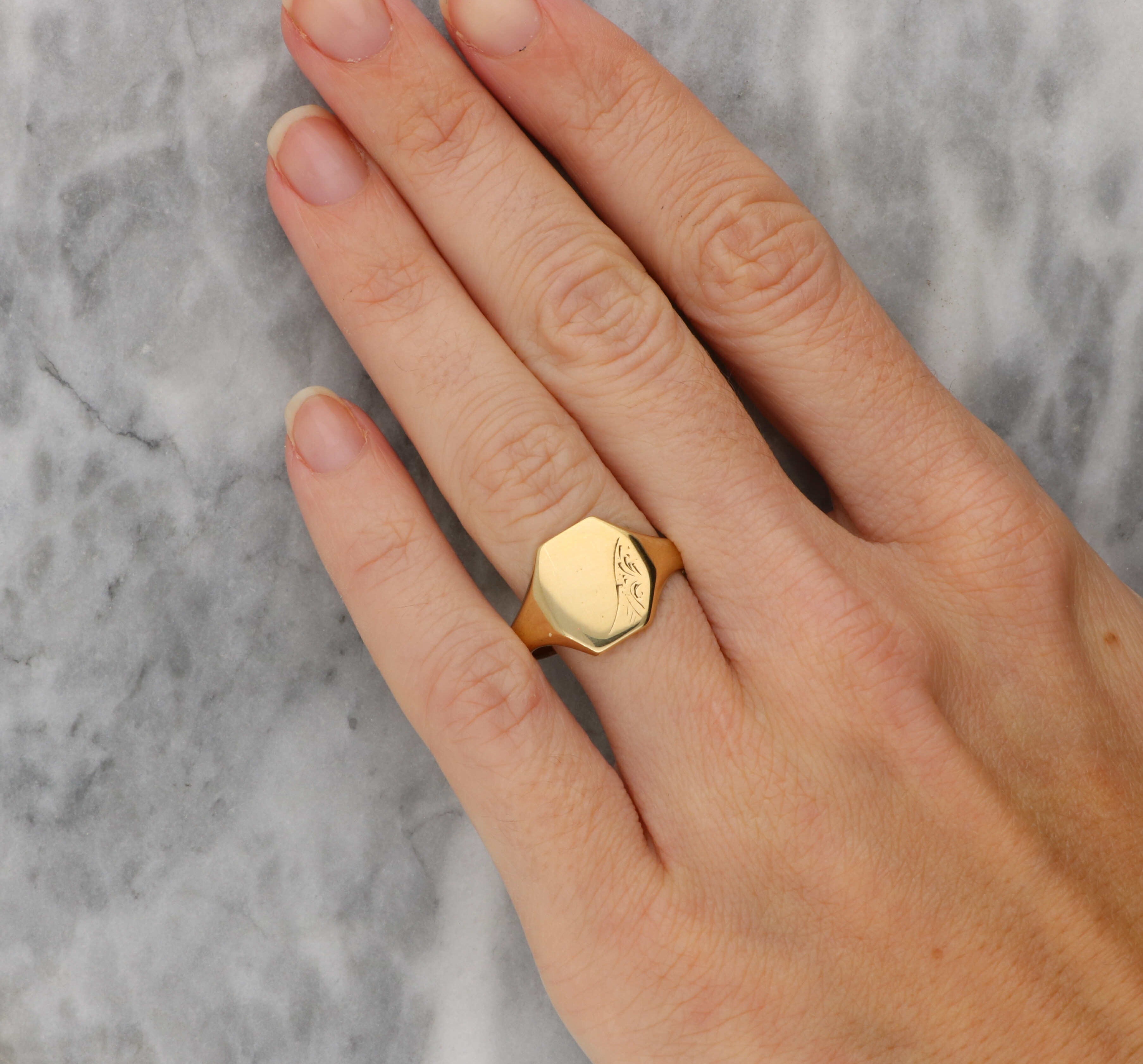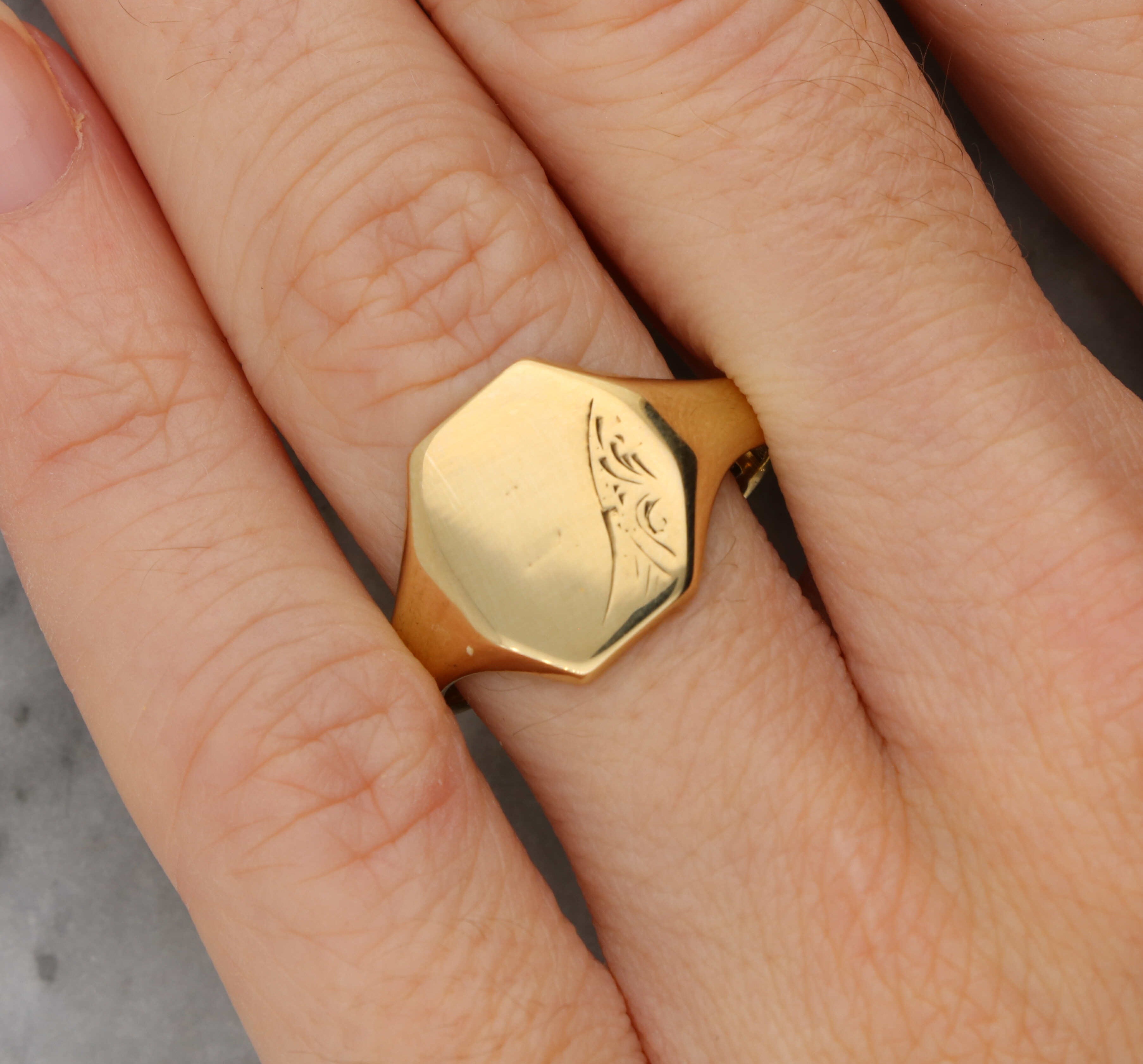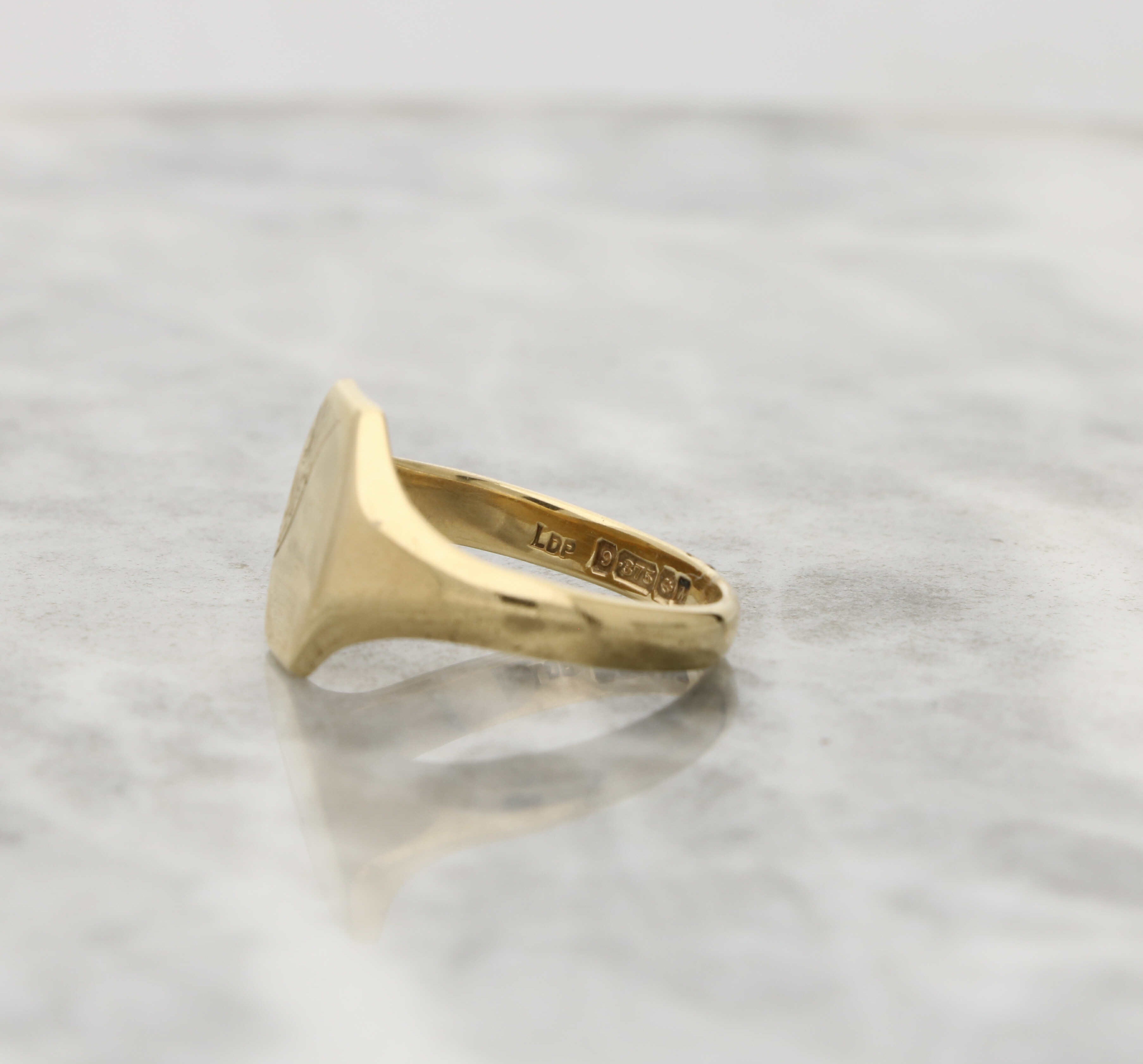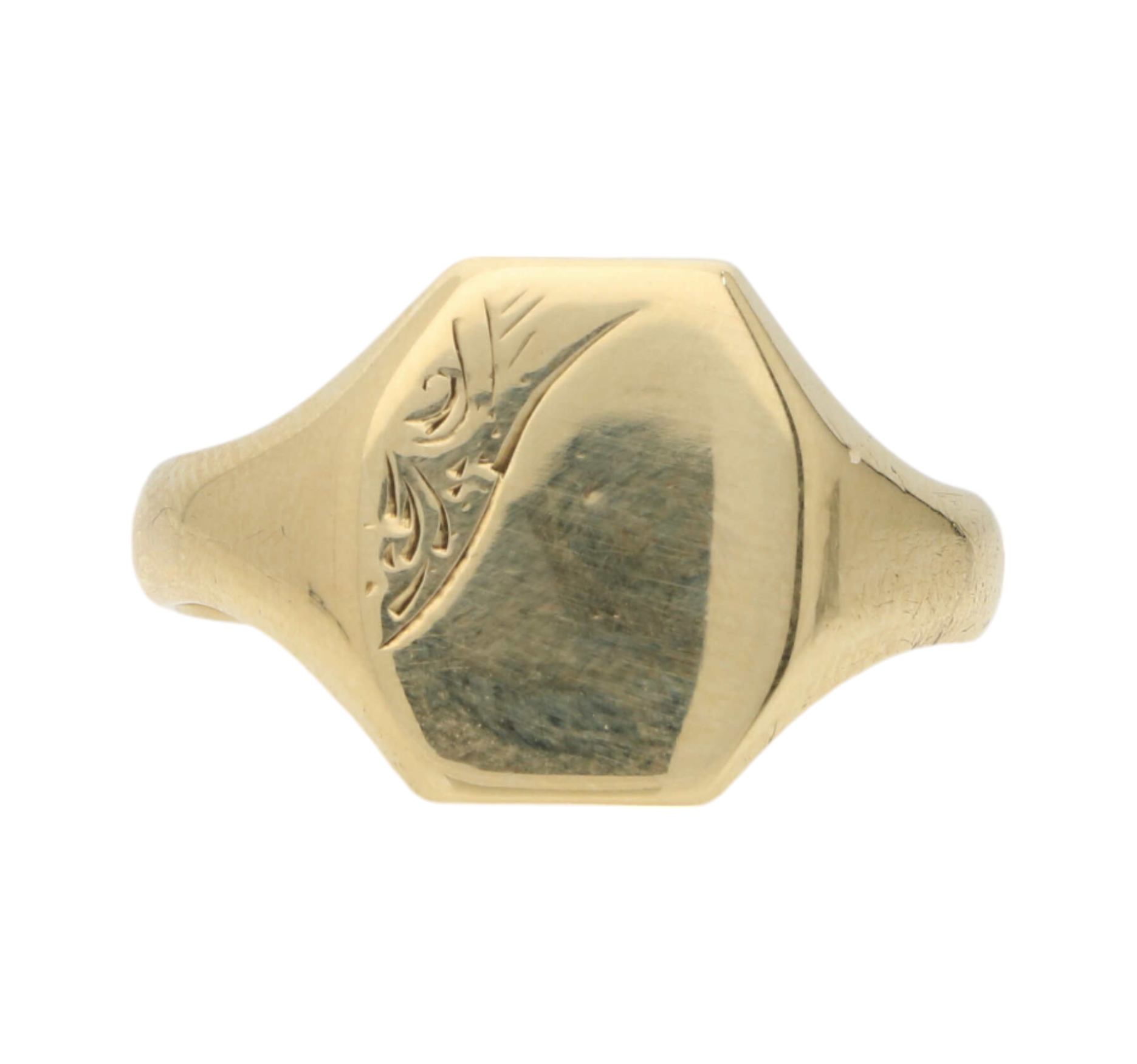 A vintage 9ct gold half engraved signet ring, Birmingham 1961