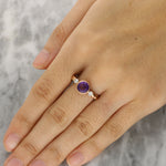 This amethyst and diamond ring is ideal as a unique engagement ring, a meaningful gift, or a charming addition to a fine jewellery collection.