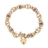 Victorian Amethyst and Pearl Link Bracelet with Heart Padlock in 9K Yellow Gold