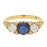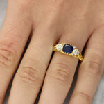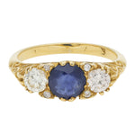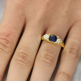 Vintage Antique Style Blue Sapphire Diamond Three Stone Ring