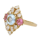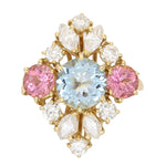 Vintage Aquamarine, Pink Sapphire and Diamond Cluster Ring