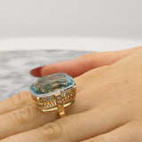 This vintage aquamarine ring makes a wonderful gift and is the perfect cocktail ring to dress up any look for special occasions. The light blue tones of the aquamarine contrast beautifully with the warmth of the gold, creating a piece that feels both striking and versatile.