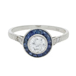Vintage Art Deco Inspired Sapphire and Diamond Target Ring