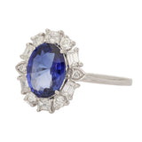 Vintage Blue Sapphire and Diamond Cluster Ring