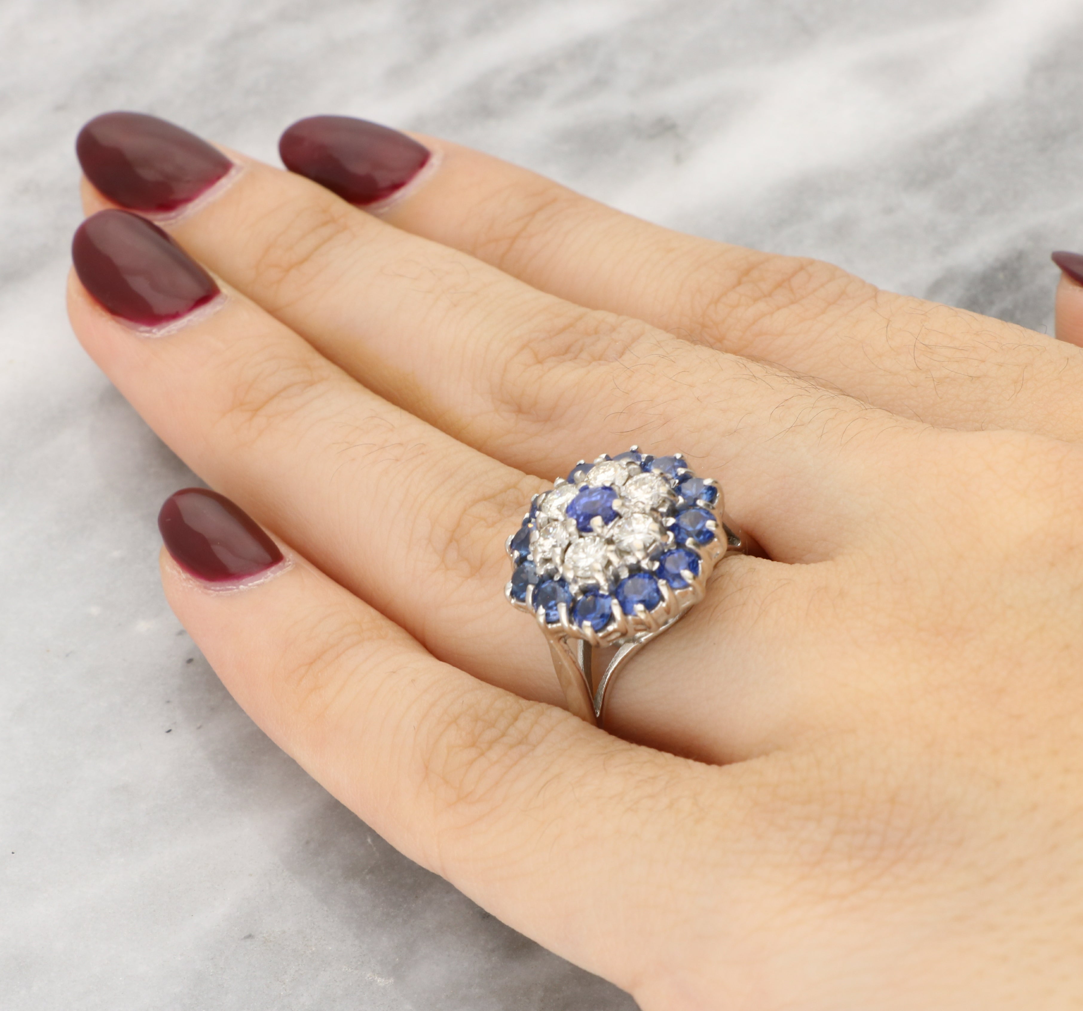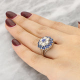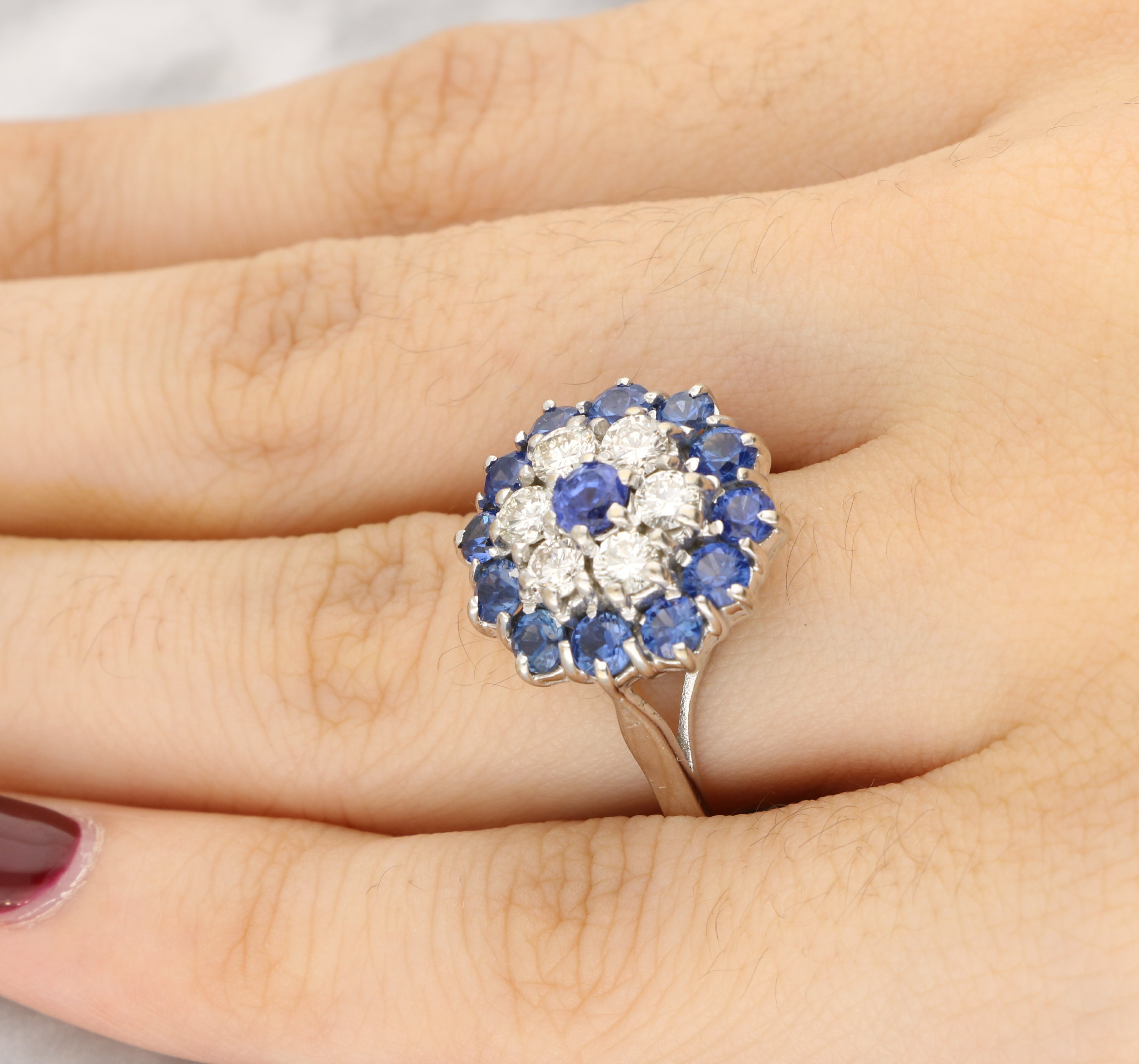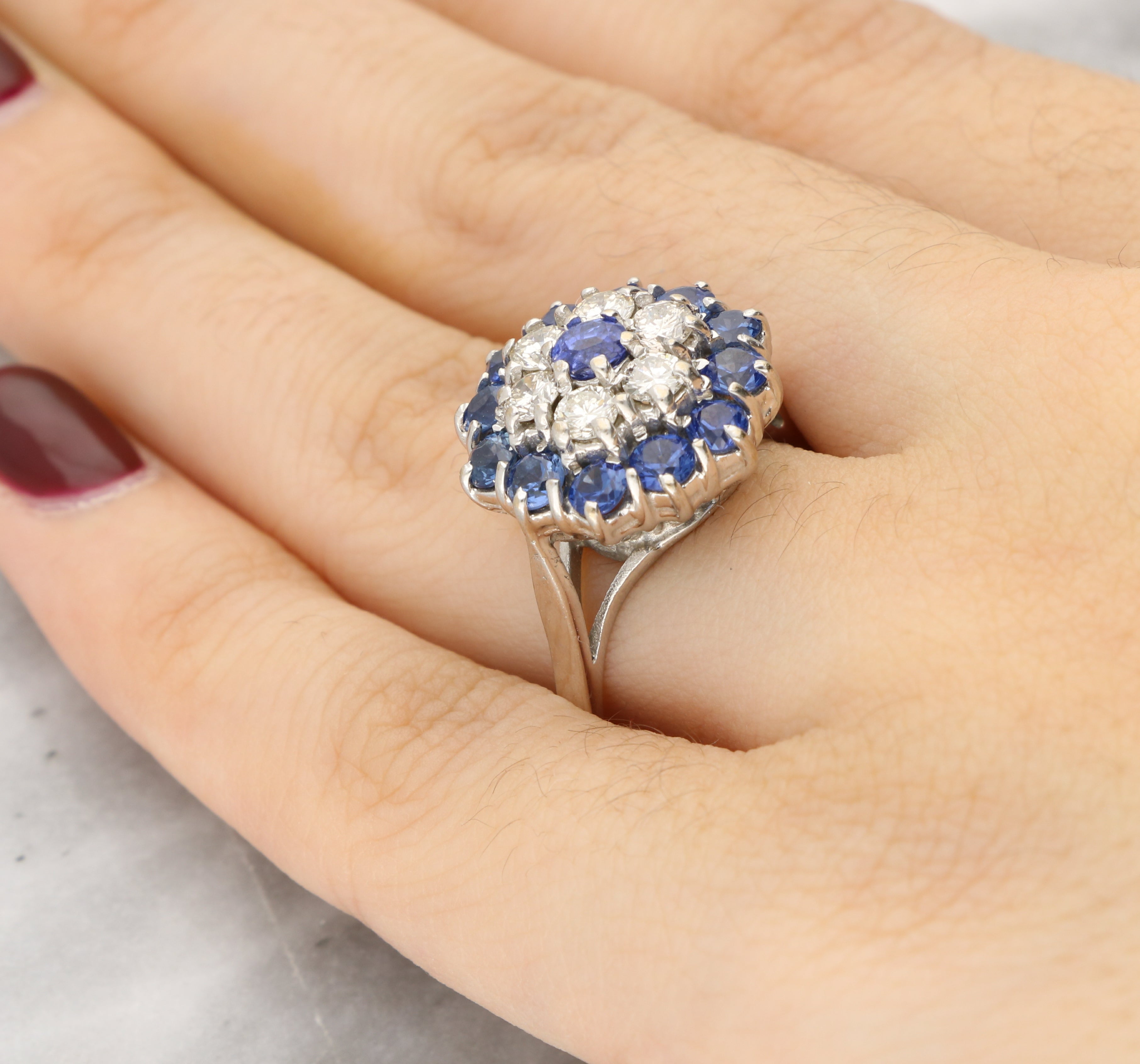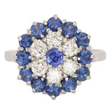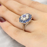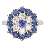 Vintage Sapphire & Diamond Cluster Ring Set In 18ct White Gold