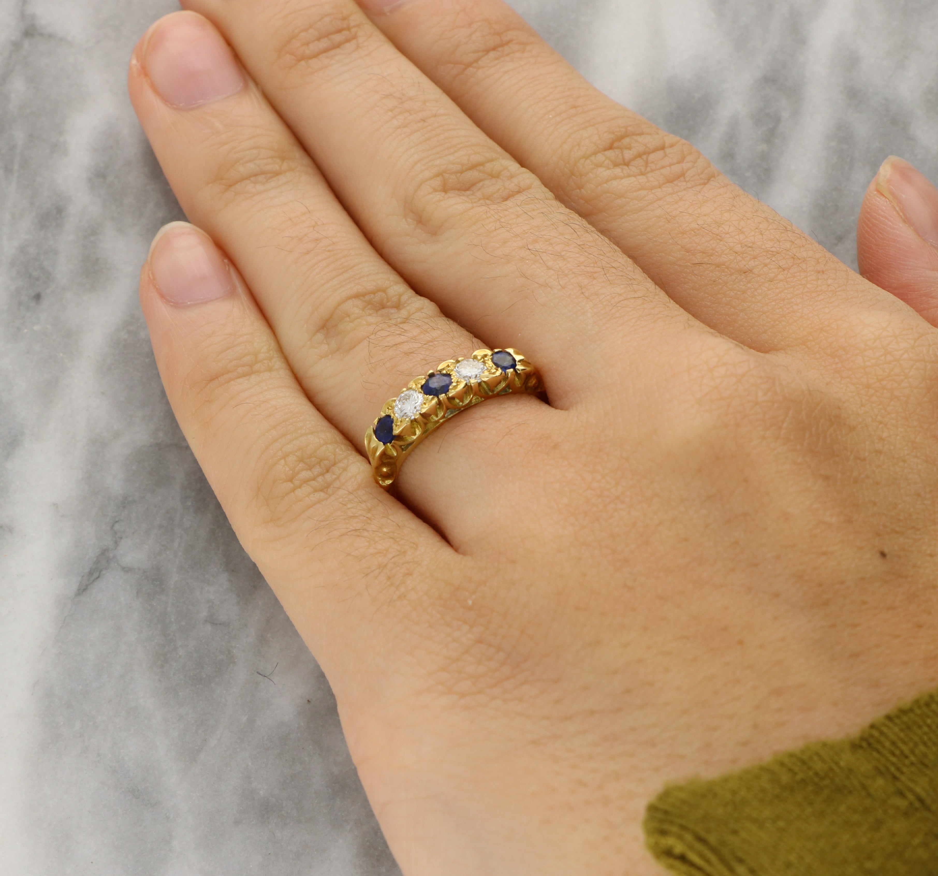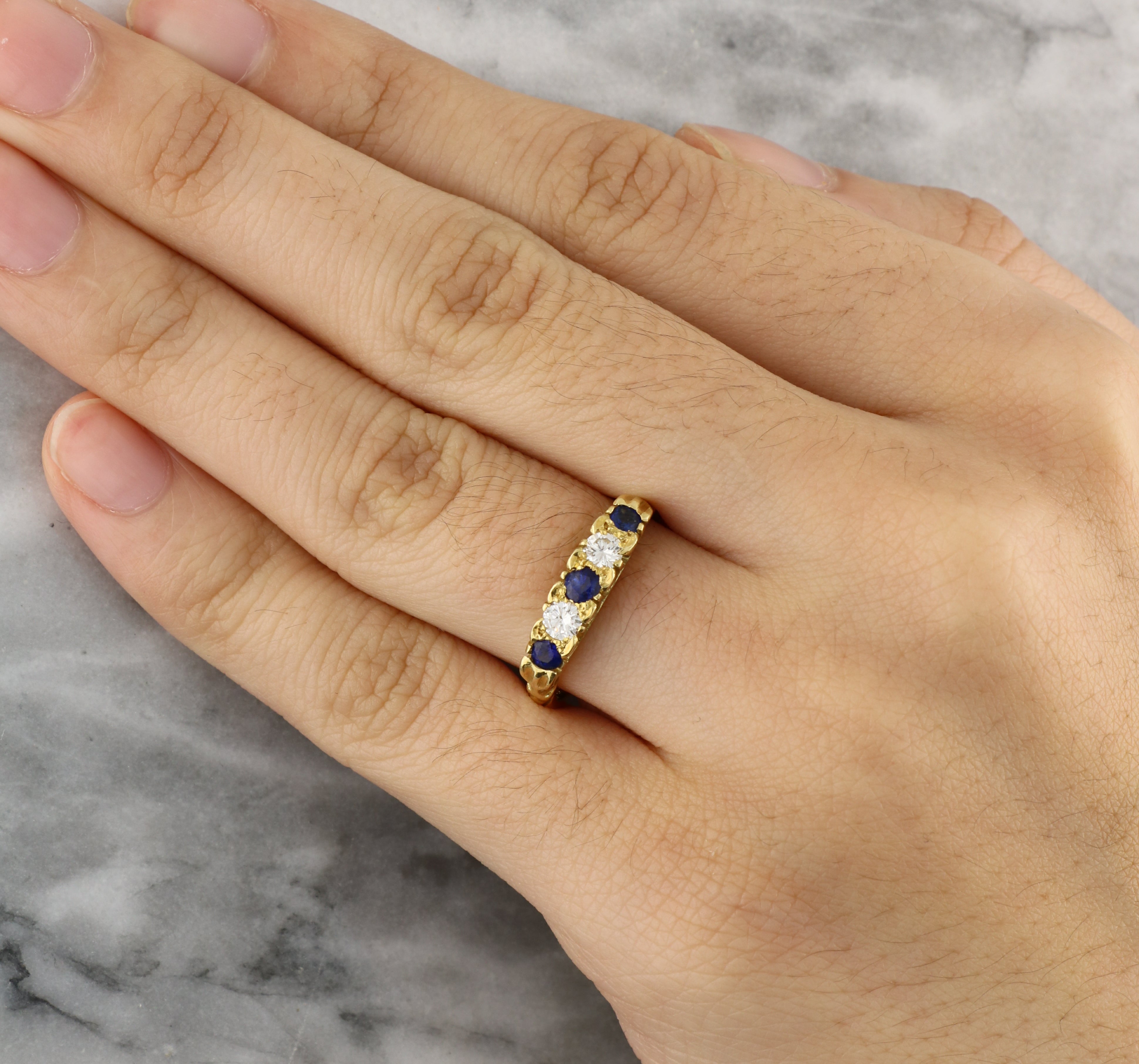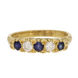 Vintage Blue Sapphire and Diamond Five Stone Ring