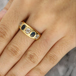 Antique Blue Sapphire and Old Cut Diamond Five Stone Ring