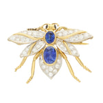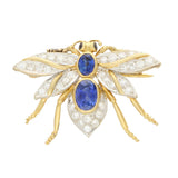 Vintage Blue Sapphire and Diamond Insect Bee Brooch