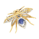 A highly unique blue sapphire and diamond insect bee brooch set in 18k yellow and white gold.