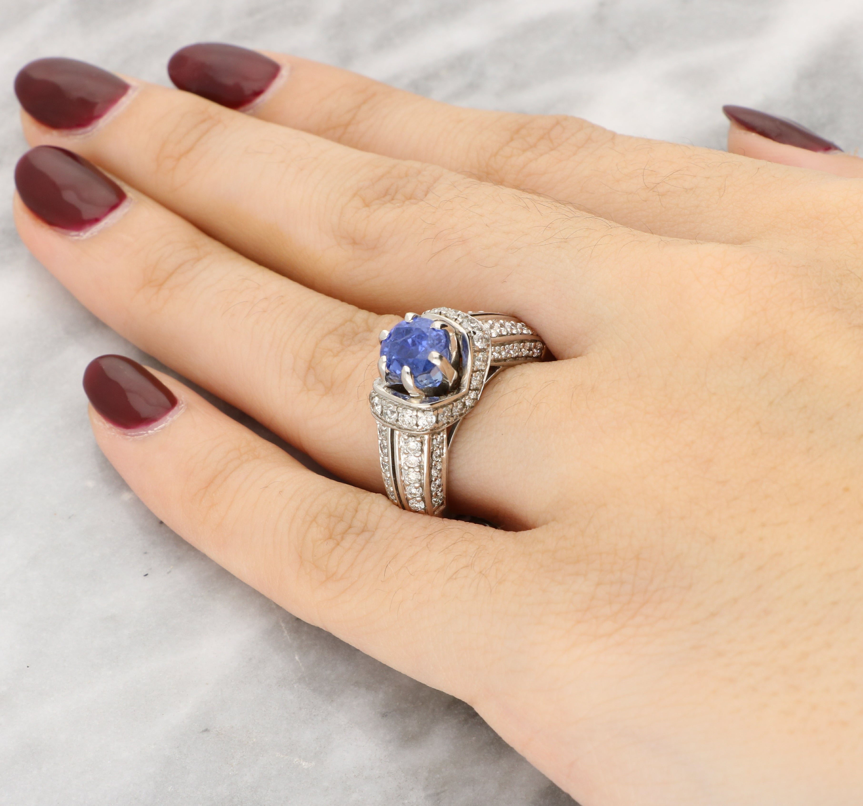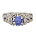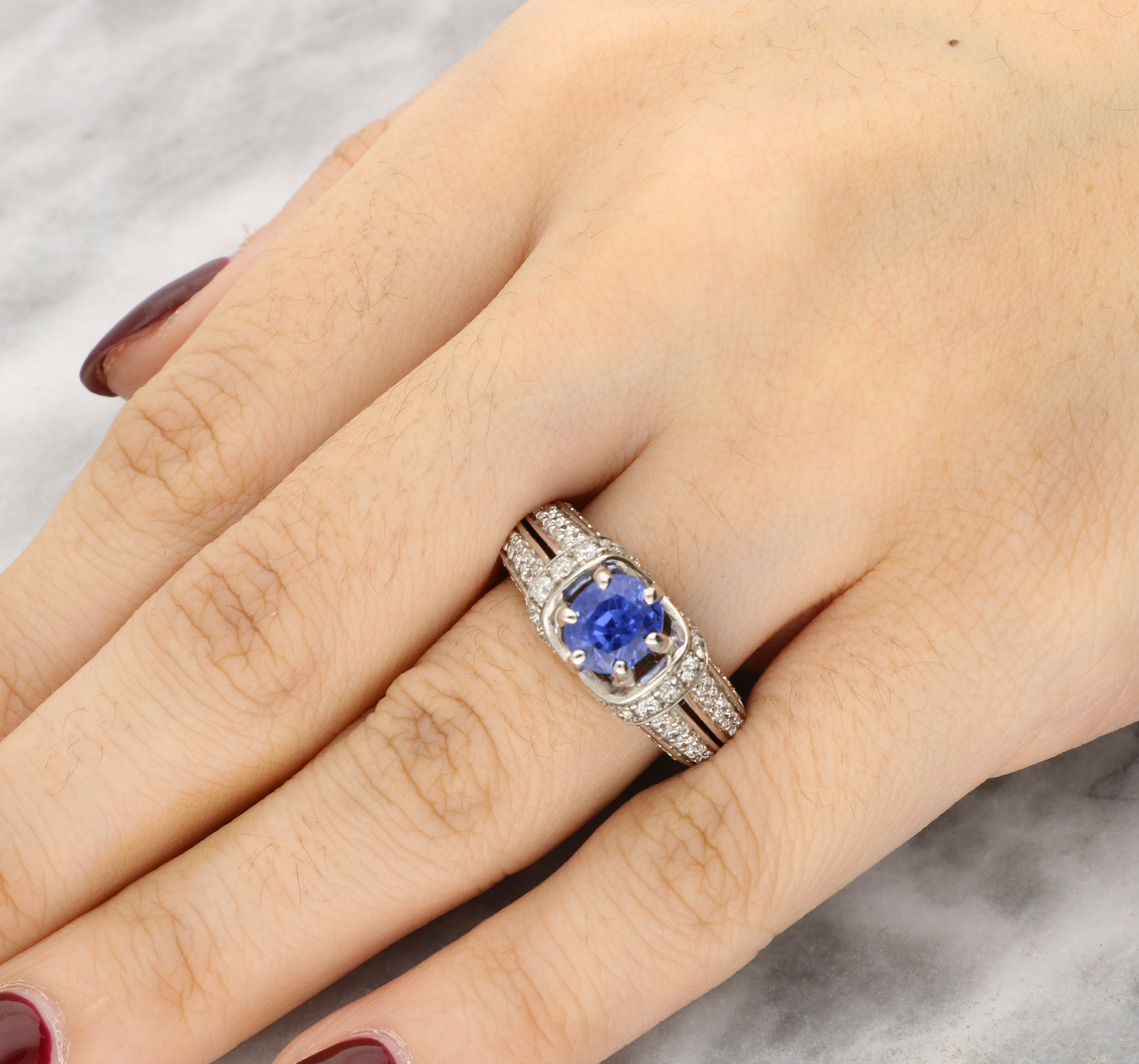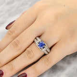 Vintage Sapphire and Diamond Ring Set In 14K White Gold.