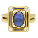 Vintage Cabochon Sapphire, Diamond and Enamel Panel Ring