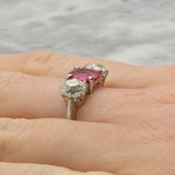 Vintage Certified Burmese Ruby and Old Cut Diamond Three Stone Ring