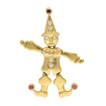 Vintage Articulated Clown Brooch in 18K Yellow Gold with Diamond and Ruby Detail