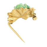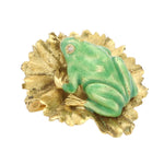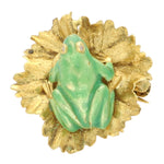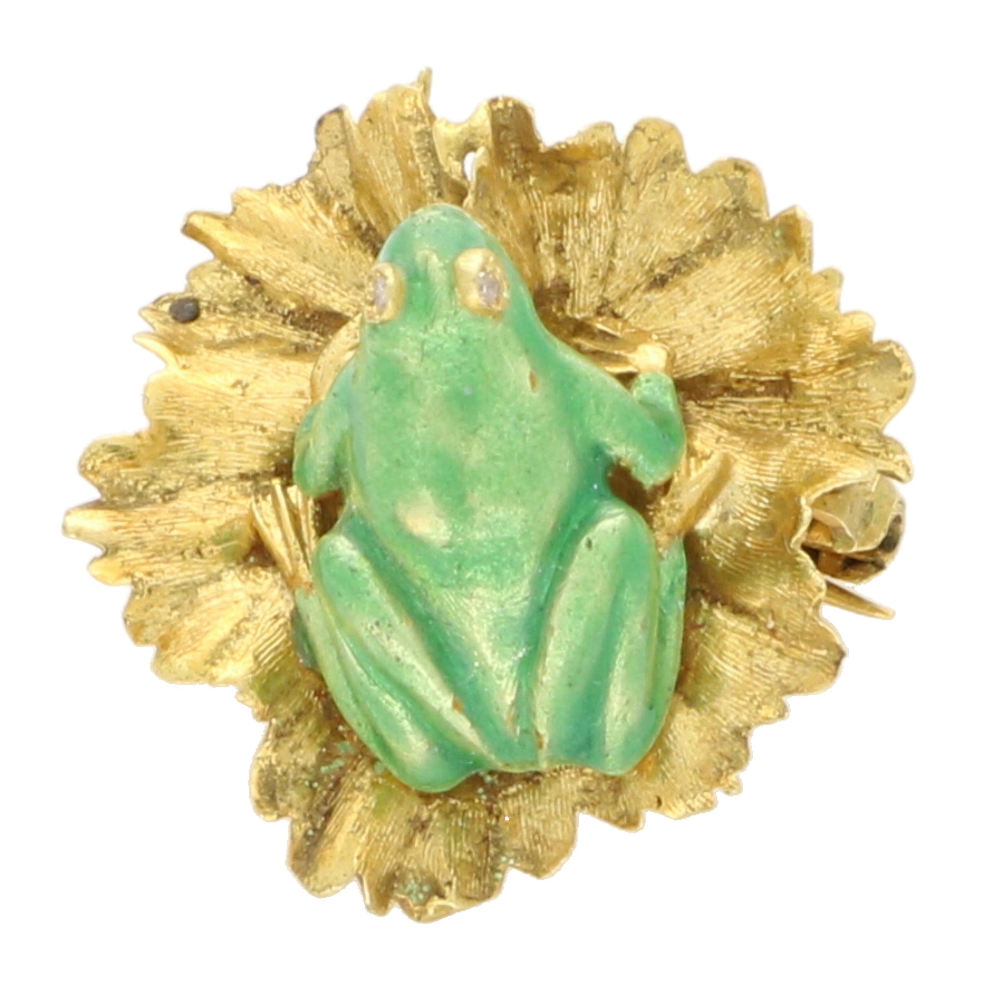A quirky vintage diamond and green enamel frog brooch set in 18k yellow gold.