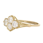 This beautifully balanced vintage ring features four round brilliant-cut diamonds arranged in a graceful cross-over cluster formation, creating a softly scalloped silhouette that sparkles from every angle.