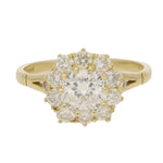 An amazing choice for an engagement ring or a special piece to celebrate an anniversary or milestone. Due to the design, this cluster could be worn for a variety of occasions! It could be easily paired with a fitted wedding band, or alternatively worn as a other hand piece.