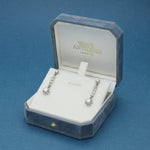 These elegant diamond drop earrings feature a sparkling old cut diamond stud, securely set with eight claws. From this hangs a row of four square-set diamonds, leading to a final old cut diamond drop, eight-claw set within a delicate scalloped edge. The earrings are finished with post and butterfly fittings for secure, comfortable wear.