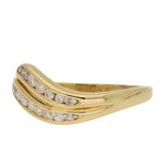 This elegant ring is crafted in polished yellow gold and features a fluid, wave-like design set with a continuous line of round brilliant-cut diamonds. The gently undulating form creates a sense of movement and softness, with the diamonds channel set along the curves to produce a refined, seamless sparkle across the surface.