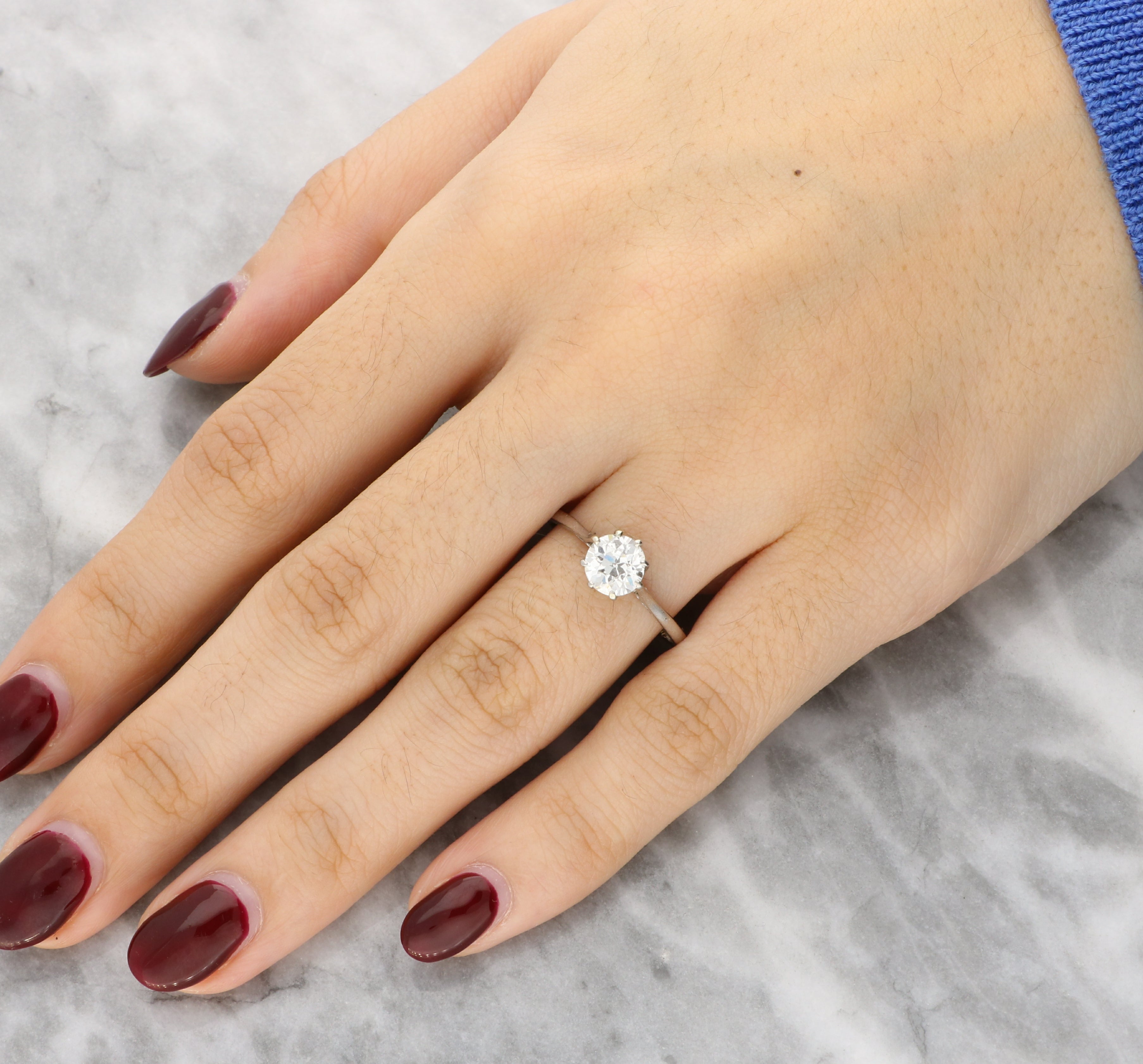Old-Cut Diamond Solitaire Ring Set in Platinum