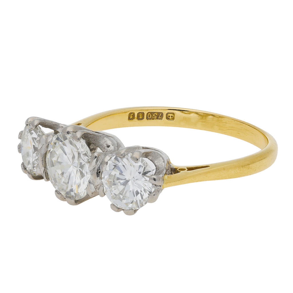 A stunning vintage 18ct yellow gold diamond three stone ring.