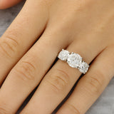 Three stone diamond rings like this are popular for engagement or special occasion rings, offering a striking way to showcase a centre stone while adding extra sparkle with side diamonds. The clean layout makes the ring stand out without being overcomplicated, perfect for anyone looking for a classic yet distinctive design.