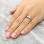 This three-stone ring symbolises past, present and future, a graceful choice for an engagement ring or a meaningful addition to any fine jewellery collection.