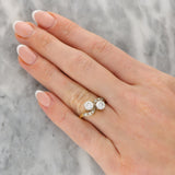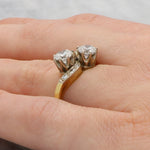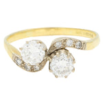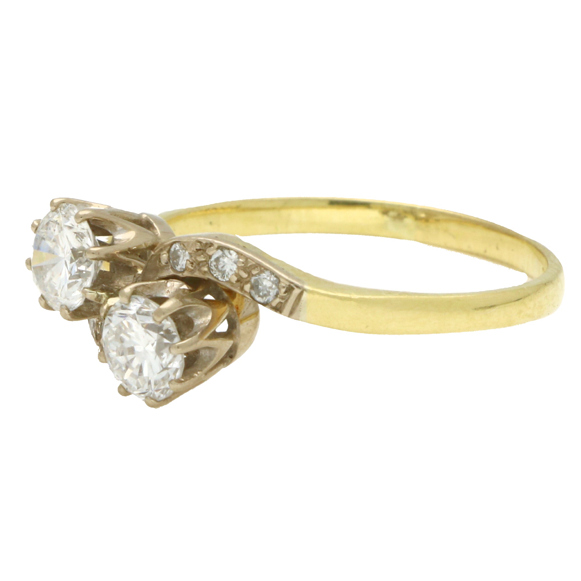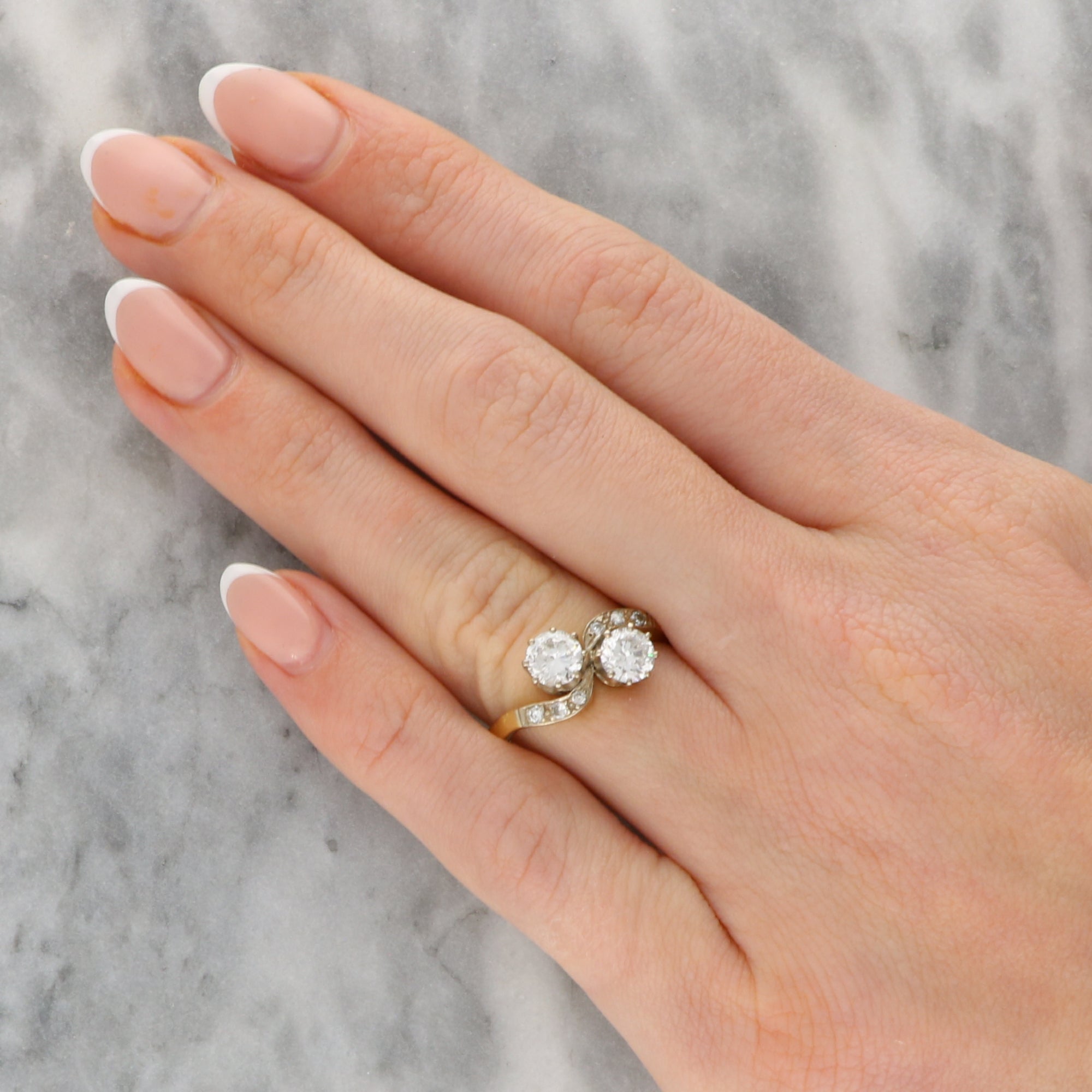 A beautiful vintage diamond toi-et-moi crossover ring set in 18k yellow gold and platinum