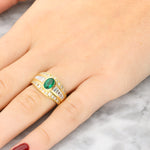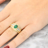 A beautiful vintage emerald and diamond bombe ring set in 18k yellow gold.