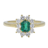 Vintage Emerald and Diamond Cluster Ring set in 18ct Yellow Gold