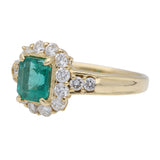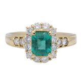 Vintage Emerald and Diamond Cluster Ring set in 18ct Yellow Gold