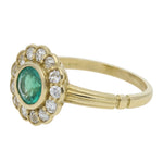 Vintage Emerald and Diamond Cluster Ring set in 18ct Yellow Gold