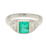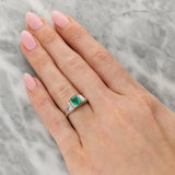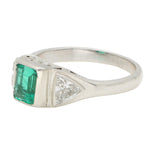 Vintage Emerald and Trilliant Cut Diamond Three Stone Ring