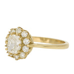 Vintage Cushion Cut Diamond Cluster Ring Set in 18 Carat Yellow Gold
