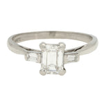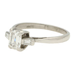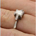 A sparkly vintage emerald cut diamond ring set in 18k white gold.