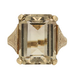 This smoky quartz ring is full of period character. Its impressive scale and gorgeous detailing make it a distinctive statement piece and an appealing addition to a fine vintage jewellery collection.