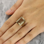 This striking ring is crafted in 9K yellow gold and set with a bold rectangular step-cut smoky quartz, securely held in a four-claw setting. The gemstone displays rich smoky brown tones with subtle transparency, its crisp step-cut facets lending an architectural quality to the design.