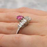 A beautiful vintage ruby and diamond toi-et-moi ring set in platinum.