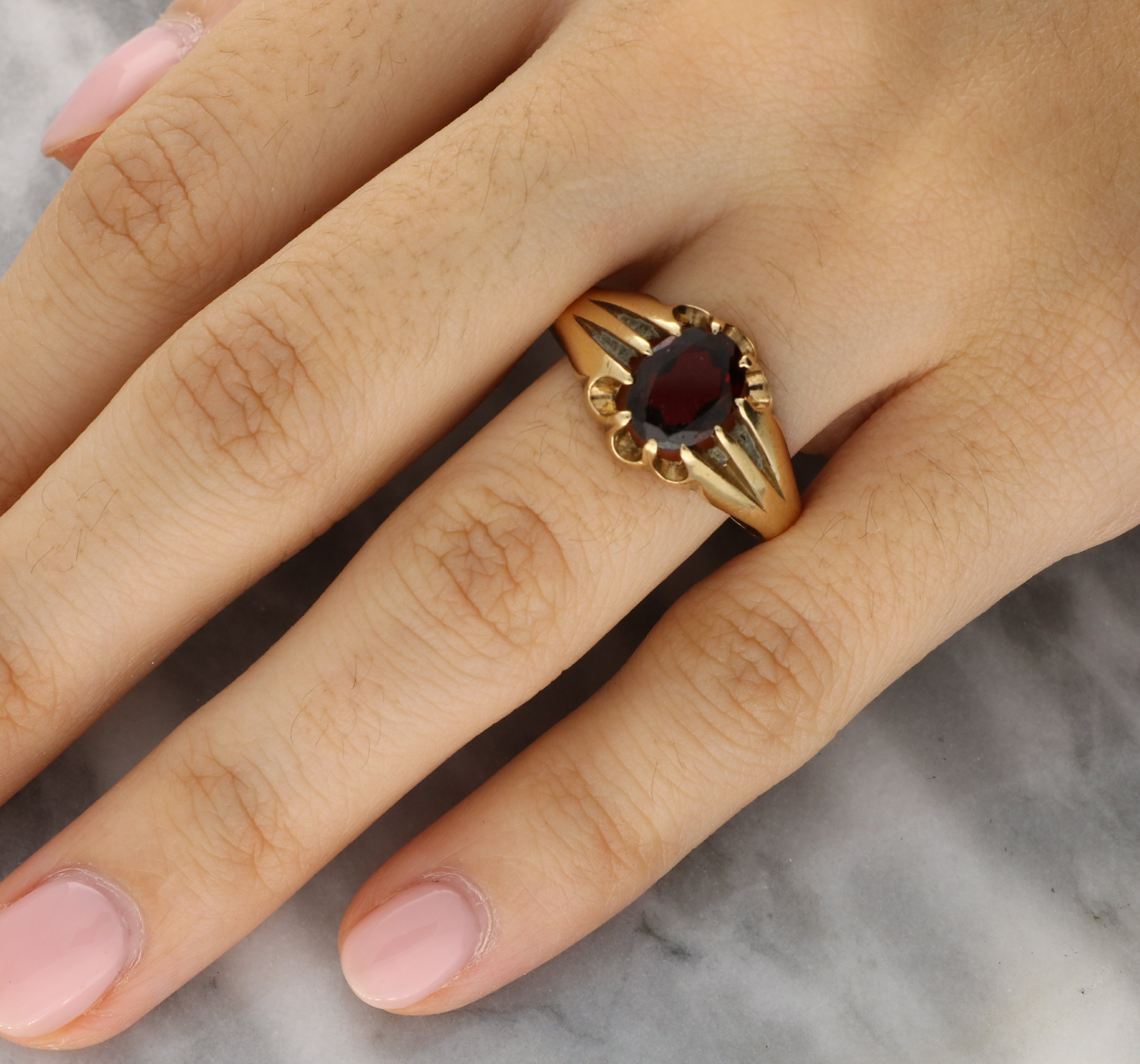 Victorian Garnet Solitaire Ring in Yellow Gold