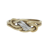A stylish vintage 1990's knot ring set in 9k yellow and white gold.