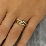 The ring is composed of an intertwined knot, echoing the style of the Edwardian period. Due to the design, the ring could be worn for a variety of occasions! It is perfect for mixed metal jewellery lovers.