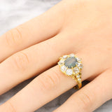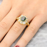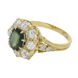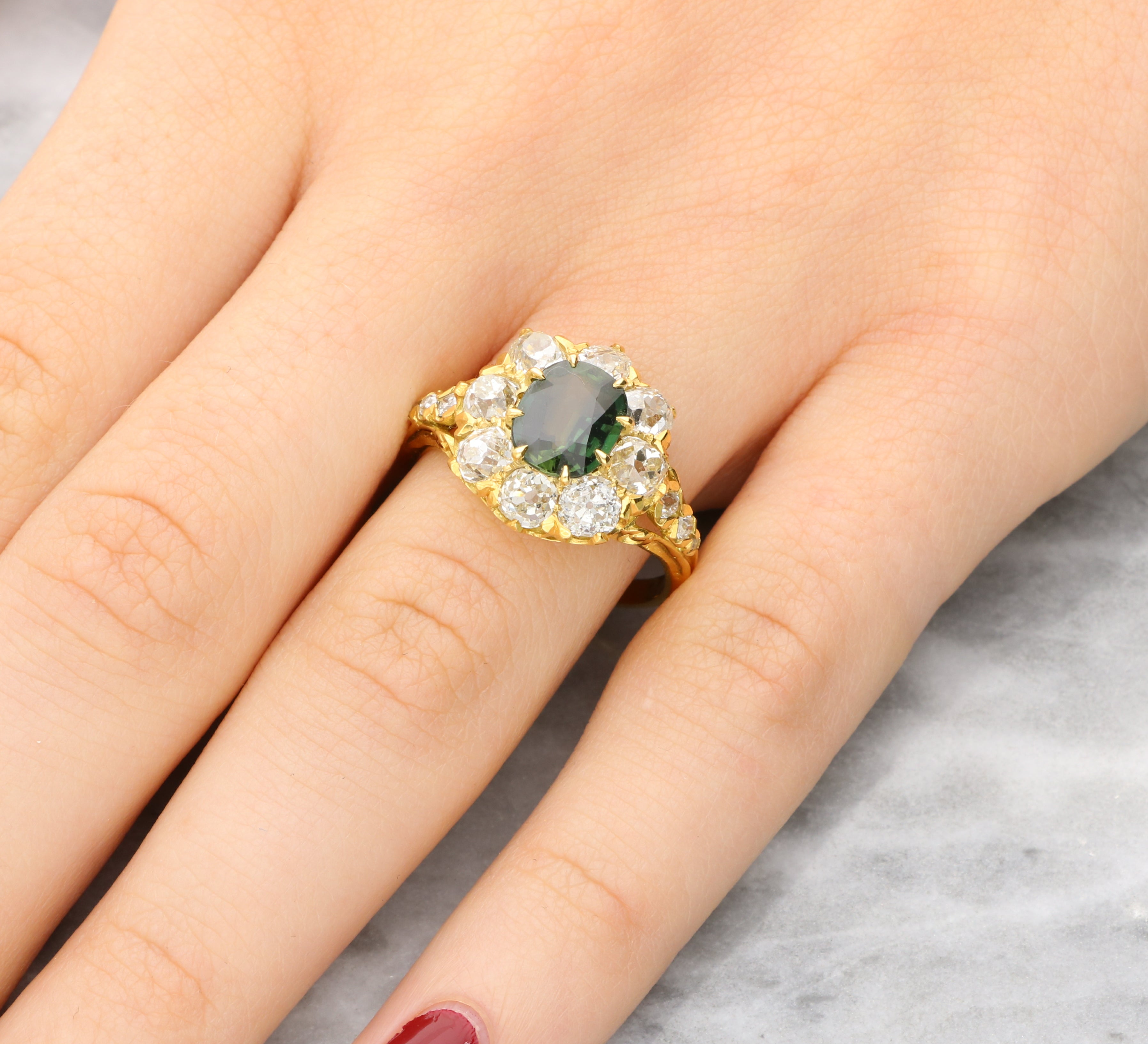 Vintage Green Sapphire and Old Cut Diamond Cluster Ring
