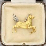 Winged Horse Gold Brooch with Diamonds and Ruby