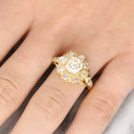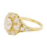 A beautiful vintage old cushion cut diamond cluster ring set in 18k yellow gold.