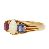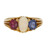 Three-Stone Ruby, Opal and Sapphire Ring in Yellow Gold