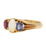Vintage Opal, Blue Sapphire and Ruby Three Stone Ring